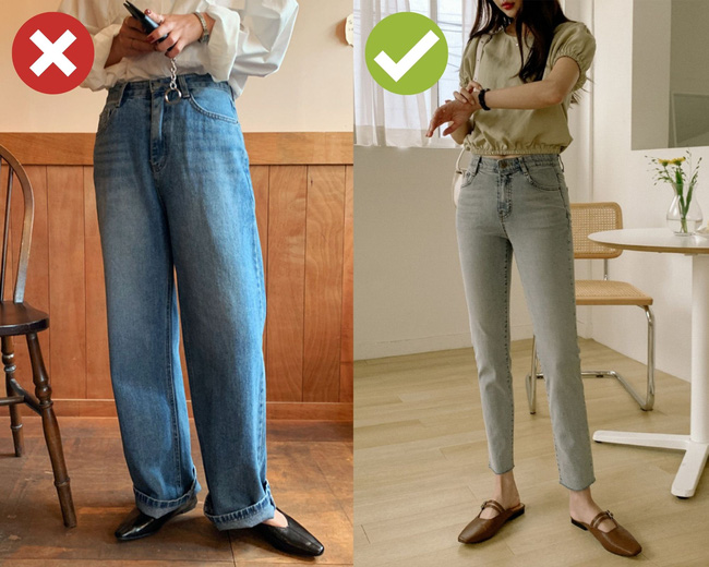 Để chắc chắn vóc dáng luôn được cao ráo, thanh thoát khi diện quần jeans, bạn nên ưu tiên những phiên bản dài trên mắt cá chân. Như vậy thì dù đi giày bệt, vóc dáng của bạn cũng không bị dìm.