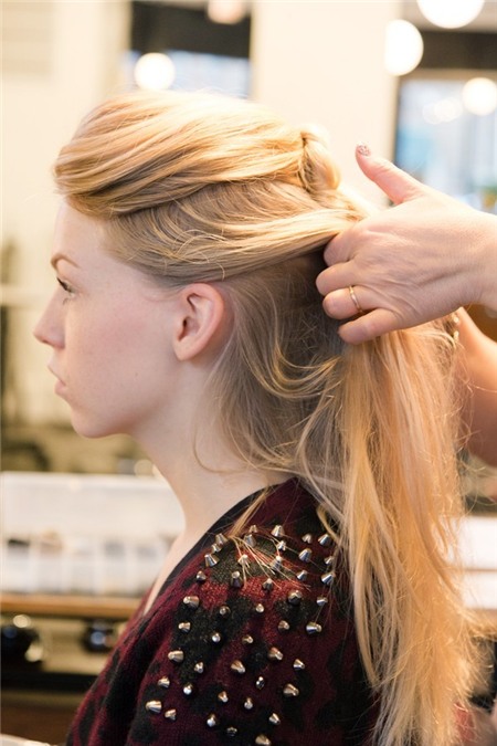 Đầu tiên, hãy chia ngôi bên cho tóc. Đường ngôi này không cần phải quá trơn tru.