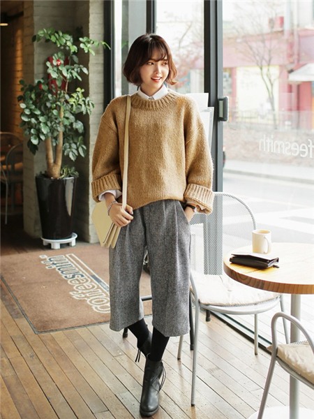 nhưng không đơn điệu, không quá rực rỡ nhưng một set đồ với áo len ghi