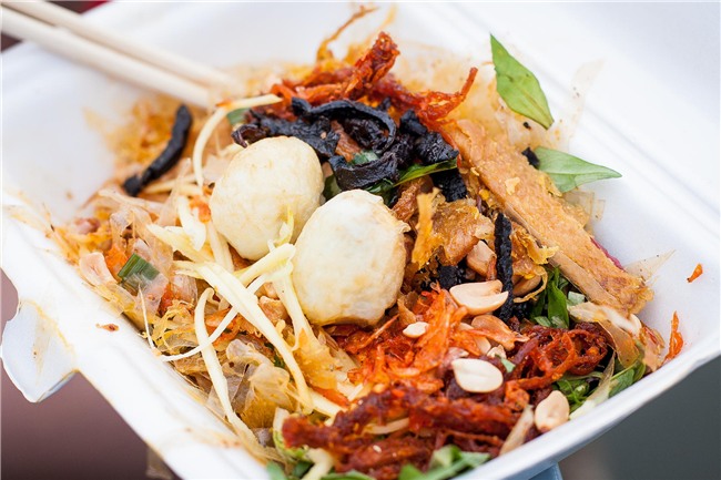 Đế bánh được làm từ chiếc bánh tráng rất thuần Việt (Ảnh: Huyền Trần).