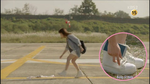 Đôi giày thể thao trắng độn đế xuất hiện trong những tập đầu còn "gây sốt".