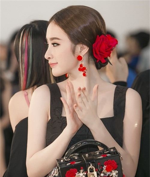Không chỉ chăm chút cho trang phục, cô còn quan tâm tới phụ kiện đi kèm cho mái tóc khiến tổng thể trở nên lộng lẫy.