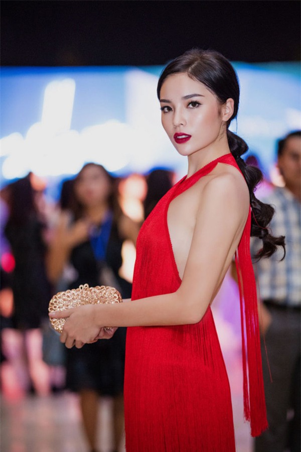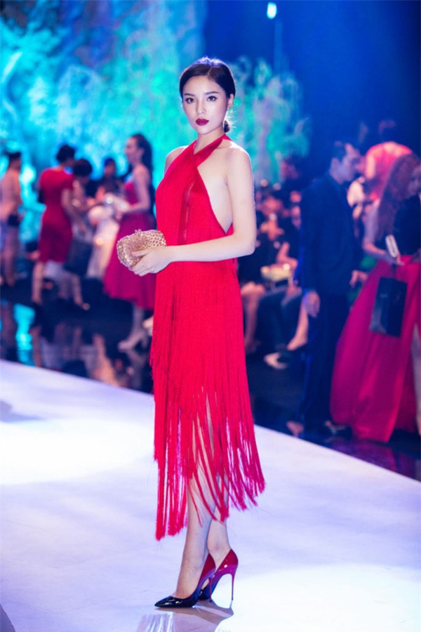 Thêm một bộ váy gợi cảm của Kỳ Duyên khiến ai ngắm nhìn cũng phải bồi hồi xoa xuyến. Bộ váy thiết kế tua rua mềm mại với gam màu đỏ cam nổi bật nước da trắng sang hoàn hảo của nàng Hậu...