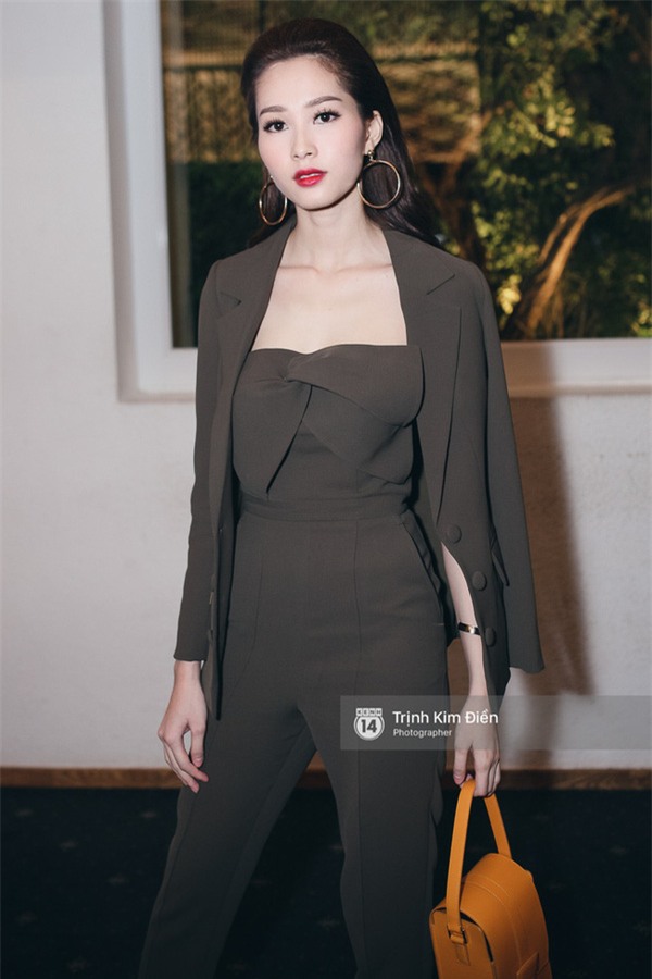 Cùng với đó là phong cách trang điểm đậm nét với môi trầm và mắt sắc cùng mái tóc tóc tết cầu kỳ càng tăng thêm nét cá tính, sắc lạnh của nàng Hậu trong sự kiện này.