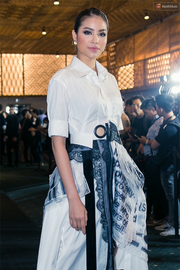 Người đẹp để tóc tết cá tính, trang điểm sắc sảo. Bộ cánh đẹp mắt và cá tính mà cô diện là một sáng tạo của NTK Võ Công Khanh.
