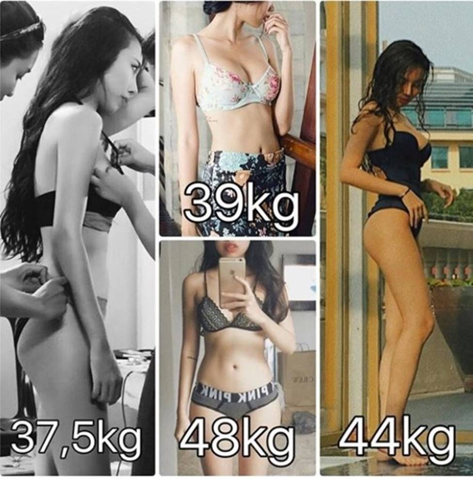 Cô nàng tăng lên 10kg (48kg) với số đo 3 vòng là 79-56-89.