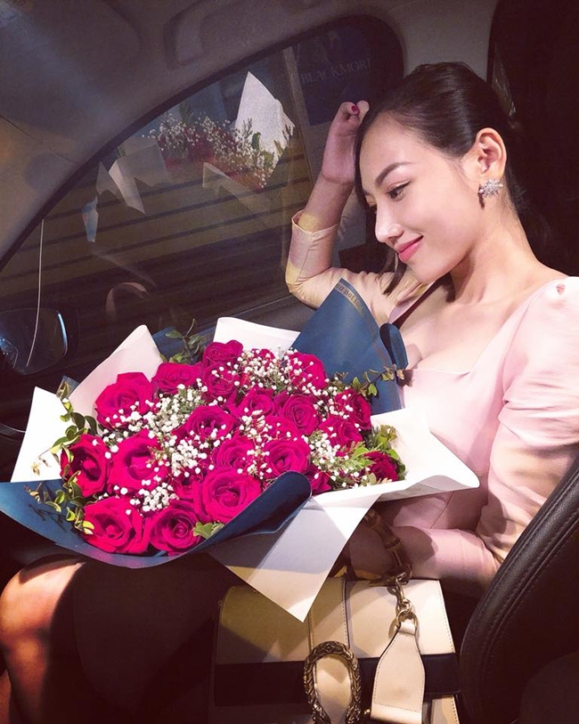 Trước đó, cô cũng gây chú ý khi chia sẻ ảnh ngồi trên xe ôm bó hoa tươi, vẻ mặt ánh lên sự rạng rỡ, hạnh phúc.