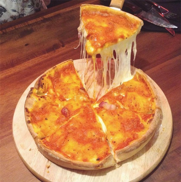 Những năm gần đây, pizza đã trở thành một trong những món ăn vô cùng quen thuộc của người Việt. Khi những chiếc pizza với lớp đế mỏng và đầy tú hụ nhân bên trên kiểu Ý bắt đầu trở nên quá quen thuộc thì chiếc pizza nhân nhồi hình tròn, béo ú theo kiểu Chicago Mỹ xuất hiện đã như một làn gió mới khiến các tín đồ ẩm thực nói chung và tín đồ pizza đứng ngồi không yên.