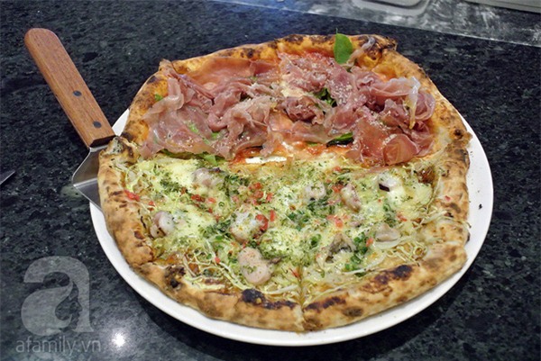Ở tiệm pizza này bạn có thể tìm thấy những vị pizza rất Nhật như gà teriyaki, hay pizza với sashimi cá hồi. Bạn cũng có thể 2 nửa bánh chẳng liên quan rồi tính tiền theo đúng những gì bạn thưởng thức chứ không có chuyện làm tròn giá theo nửa đắt hơn ở một số tiệm pizza thường thấy.