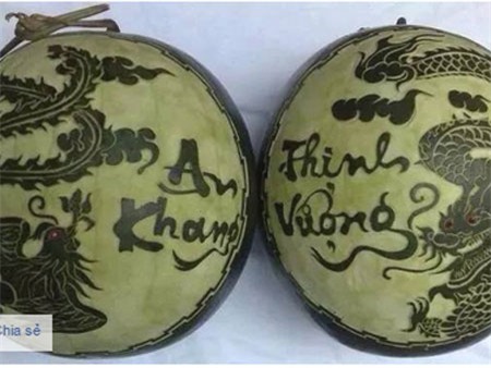Dưa hấu khắc hình rồng phượng và chữ An Khang Thịnh Vượng tỉ mỉ, tinh tế. |