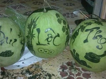 Ngoài các loại quả chưng Tết quen thuộc, năm nay dưa hấu khắc hình dê được khá nhiều người dân Thủ đô lựa chọn. Tùy theo cân nặng và độ phức tạp của hình khắc mà quả dưa sẽ có giá khác nhau. Thường dưa nặng 3–7 kg có giá bán 260.000 đồng/quả, 8kg có giá 310.000 đồng, quả nặng 10 kg giá 350.000 đồng, nếu quả dưa khắc với nhiều chi tiết hoa văn phức tạp, giá có thể lên đến nửa triệu đồng. Để có thể khắc được các hình đẹp, độc đáo lên quả dưa, một người thợ phải mất đến 1–2 h.
