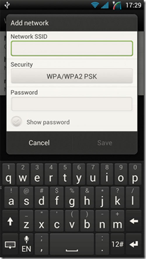 nhấn để thêm mạng bằng tay. Và người dùng phải nhập chính xác SSID,