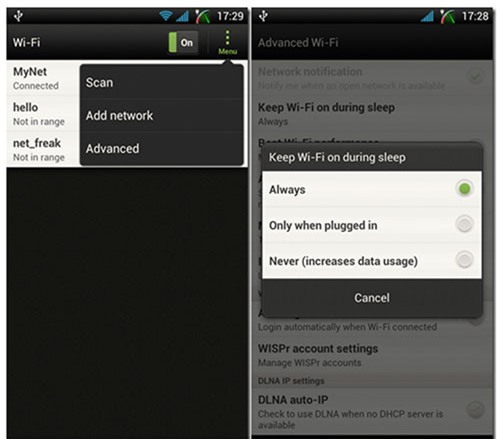 pháp: Để chỉnh chế độ Wi-Fi Sleep Policy, người dùng mở Advanced Wi-Fi