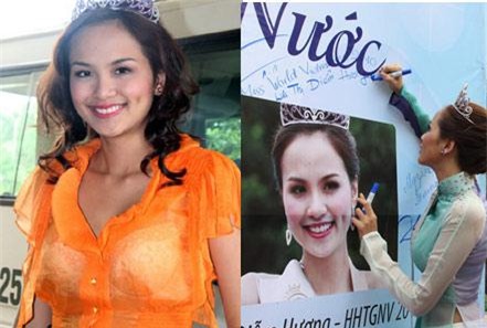 Không chỉ thế, trong cuộc thi Hoa hậu trái đất 2010 tổ chức tại Việt Nam, Diễm Hương còn viết sai cả tên danh hiệu của mình. Sự việc này khiến người xem lắc đầu ngán ngẩm trước trình độ tiếng Anh khá "tệ" của người đẹp này.