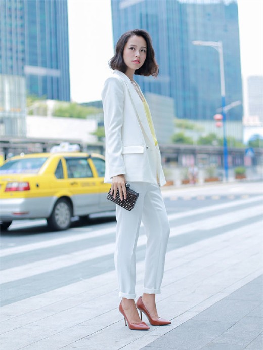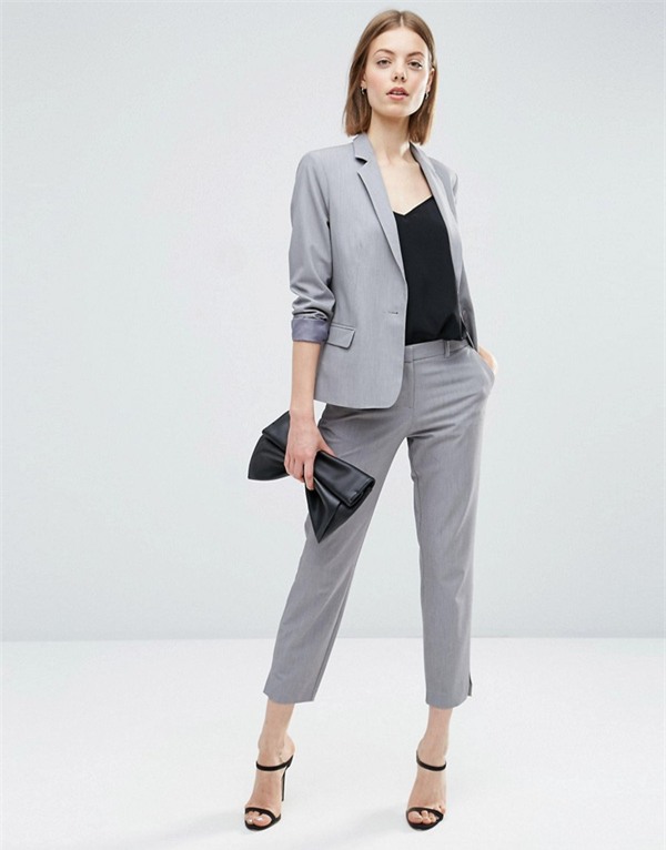 Với một buổi phỏng vấn hay các công việc trong ngành tài chính, luật hay tư vấn thì trang phục suit được cho là phù hợp và tạo hình ảnh trợ giúp tốt nhất cho công việc. Các món đồ cơ bản của kiểu trang phục này là áo khoác blazer, quần âu, sơ mi trơn, giày cao gót và màu sắc thường xoay quanh các gam màu trung tính như đen, trắng hay xanh tím than, nude. Để diện suit mà trông vẫn sành điệu, cách đơn giản nhất là xắn nhẹ tay áo lên và tạo điểm nhấn riêng bằng các phụ kiện tinh xảo như cài áo, nhẫn, khuyên tai. Một màu son nhẹ nhàng và tươi tắn như hồng, cam, san hô cũng giúp bạn có diện mạo nữ tính hơn khi diện suit.