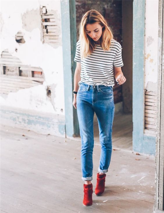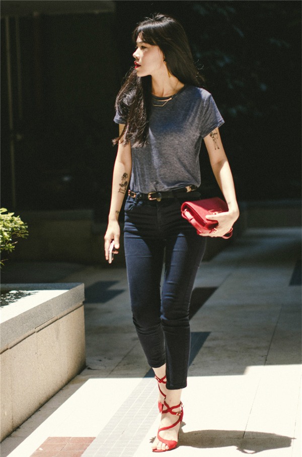 1. Trang phục trẻ trung, năng động với quần jeans, áo phông