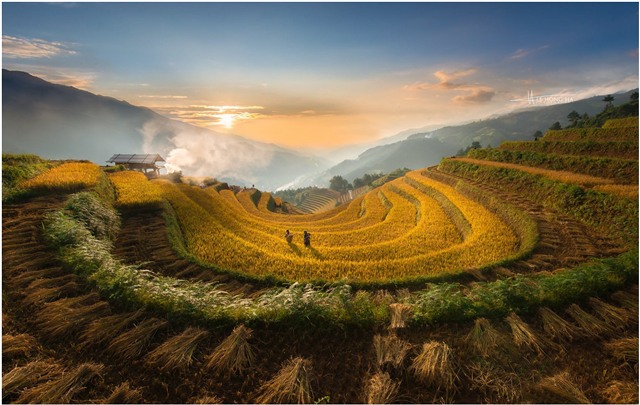 được vẽ trên 2.200 ha ruộng bậc thang kỳ vĩ nhuộm màu vàng rực của lúa
