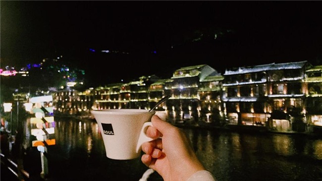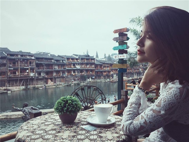 Cô nàng chuẩn bị trà từ Việt Nam để đợi khi đêm xuống thì về phòng cùng chồng thưởng trà và ngắm Phượng Hoàng Cổ Trấn về đêm.