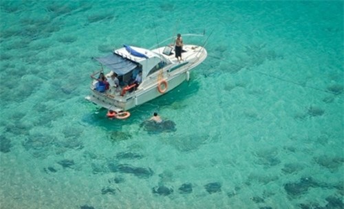 Điều đặc biệt ở đảo Điệp Sơn chính là hành trình chinh phục con đường dưới biển vô cùng độc đáo và thú vị dài gần 700 mét, nối liền hòn đảo giữa với đảo Điệp Sơn lớn. Con đường uốn lượn, rộng khoảng 1 mét và nằm sâu dưới mặt nước biển trong xanh chưa đến nửa mét. Đi bộ trên con đường này đem lại cảm giác vô cùng thích thú, xen lẫn hồi hộp và một chút sợ hãi khi bạn phải bước giữa đại dương bao la. Bạn có thể thỏa thích ngắm nhìn những đàn cá nhỏ tung tăng bơi lội hai bên, chốc chốc lại thấy những đàn cá nhảy tung lên khỏi mặt nước, hay giơ tay vẫy chào con thuyền đang chạy lướt qua.