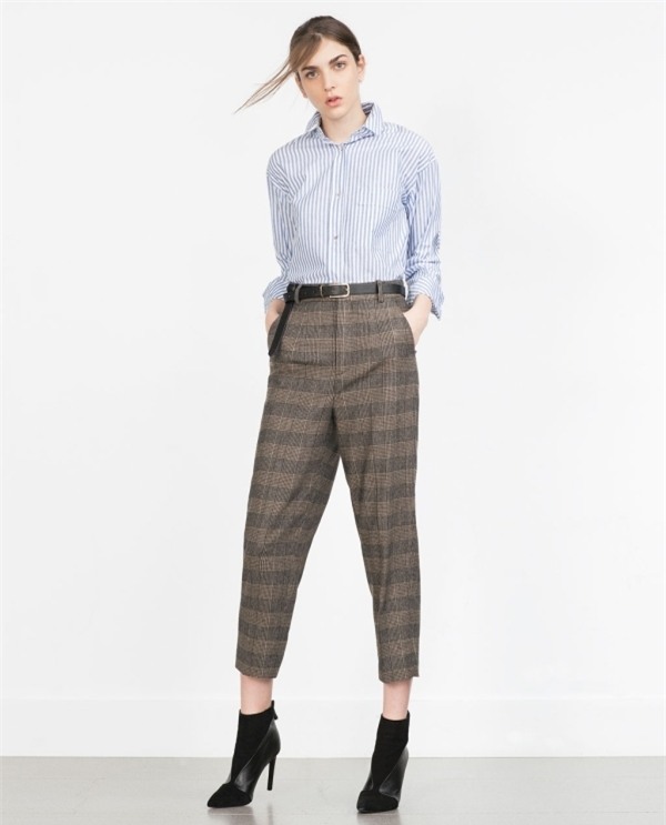 Kiểu quần này không lạ với những cô nàng công sở thanh lịch. Thiết kế phần hông xếp ly nhẹ giúp che khuyết điểm vòng 2 như bụng hay hông to. Dáng cropped với phần ống thu nhỏ dần về phía gấu, độ dài tới mắt cá chân sẽ khiến vóc dáng người mặc trong gọn và thanh thoát hơn.