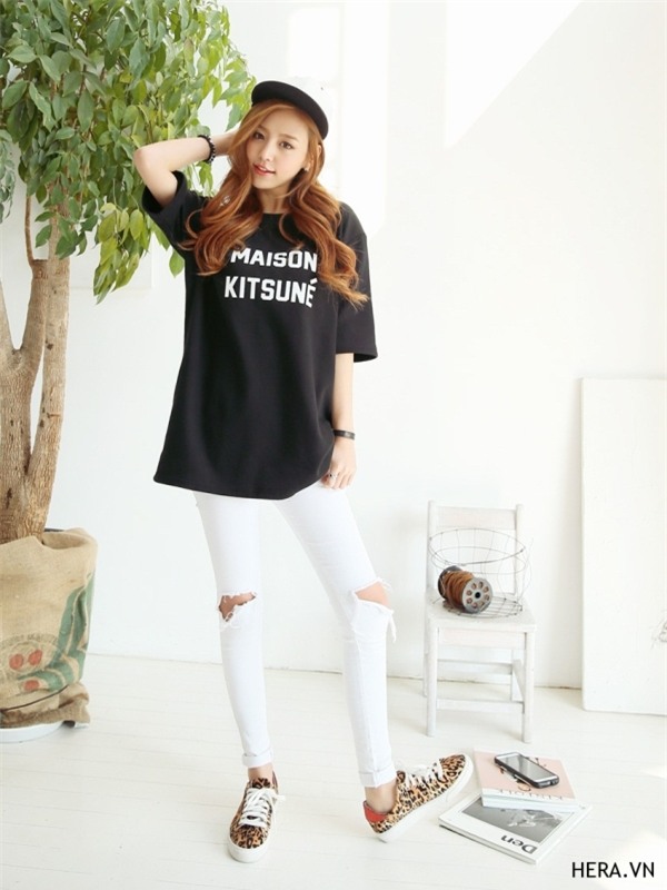 Sơ mi hay áo phông oversize vẫn luôn là 'cứu tinh' của những cô nàng thừa cân trong mùa hè. Không chỉ giúp họ cảm thấy mát mẻ và dễ chịu hơn, item này còn giấu nhẹm khuyết điểm của người mặc. Bên cạnh lựa chọn thiết kế phom dáng rộng, họa tiết cũng góp vai trò quan trọng trong việc 'giảm cân' cho bạn. Họa tiết nhỏ, nền tối hoặc kẻ sọc sẽ giúp người mặc trong gọn gàng hơn.