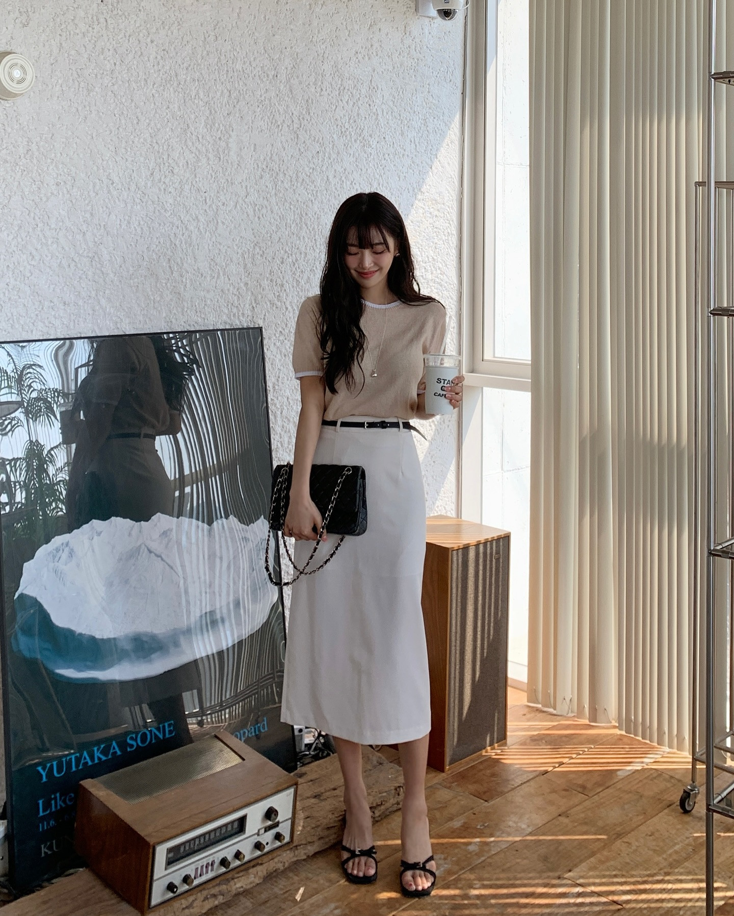 Phổ biến không kém áo thun trong mùa hè năm nay chính là áo len tăm. Mẫu áo này không chỉ trẻ trung mà còn toát lên nét nữ tính, thanh lịch. Công thức áo len tăm và chân váy suông rất dễ chinh phục. Chị em có thể tạo nên bộ cánh màu trung tính trang nhã hoặc outfit màu sắc tươi tắn, ngọt ngào với combo áo len tăm và chân váy suông. Dù phối đồ thế nào, bộ đôi áo len tăm và chân váy suông cũng mang đến sự tinh tế cho người mặc.