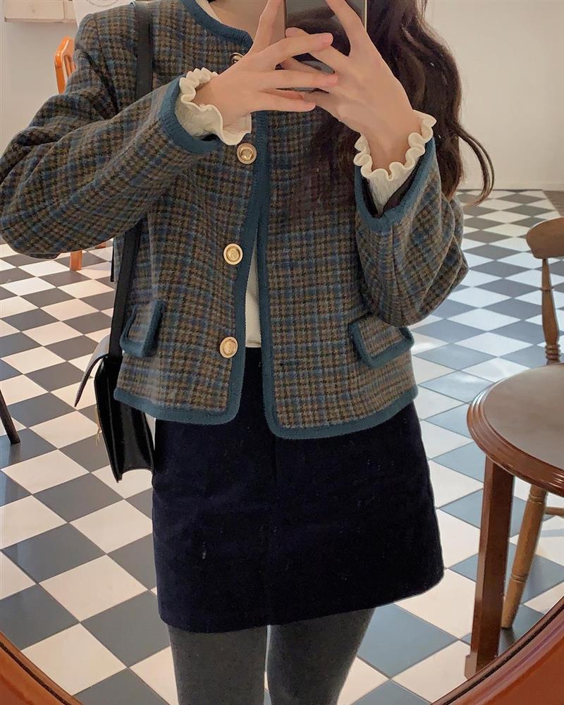 Chân váy ngắn dạ là lựa chọn rất lý tưởng trong thời điểm này, vì hợp thời tiết.