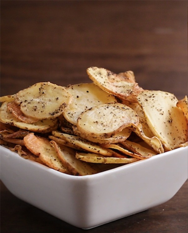 1. Làm nóng lò nướng đến 350ºF / 175ºC. 2. Khoai tây rửa sạch rồi thái mỏng hoặc dùng dao bào, cẩn thận bào mỏng khoai tây thành từng lát cho nhanh. 3. Trong một bát lớn, trộn đều khoai tây với các thành phần gồm dầu ăn, muối, hạt tiêu 4. Xếp khoai tây vừa ướp lên lò nướng đã phết một lớp dầu mỏng. Nướng trong 30-35 phút là được. Theo Trí thức trẻ |