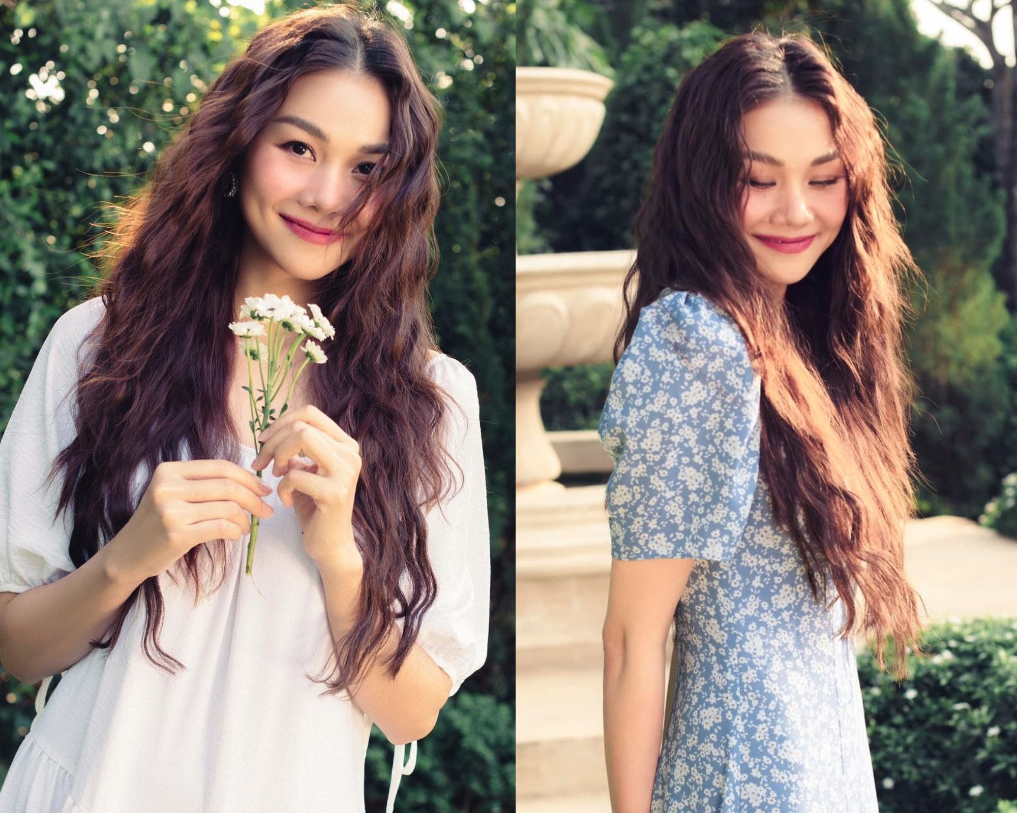 Ngọt ngào và nữ tính là ấn tượng về kiểu tóc lửng, uốn sóng của Phạm Thanh Hằng. Khi mái tóc được uốn sóng, khuôn mặt sẽ trở nên nhỏ gọn và thanh thoát hơn. Chính vì lẽ đó, tóc lửng uốn sóng rất dễ áp dụng, phù hợp với mọi kiểu gương mặt. Phạm Thanh Hằng chỉ uốn sóng nhẹ và nhuộm nâu mật ong khi để kiểu tóc có độ dài lửng lơ này. Nhờ vậy, diện mạo của cô có sự trẻ trung, rạng rỡ. Tóc lửng sóng nhẹ là kiểu tóc chị em có thể tự uốn sóng tại nhà với lô cuốn hoặc máy làm xoăn, mà không cần ra tiệm.