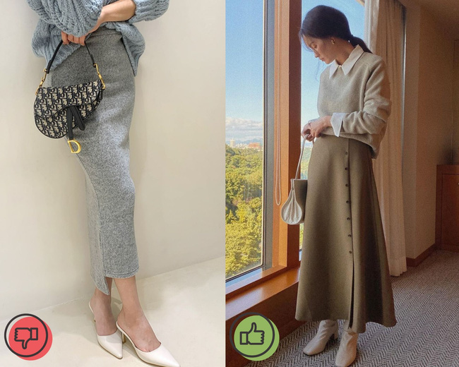 Chân váy bút chì vốn được đánh giá cao ở sự thanh lịch và chuyên nghiệp, hợp công sở. Tuy nhiên, kiểu chân váy này vẫn có những ngoại lệ và đó là phiên bản có chất vải mềm mỏng, như là len, cotton… Kiểu chân váy này không được đứng dáng cho lắm, dễ làm mất đi nét chuyên nghiệp và thanh lịch vốn có của chân váy bút chì, nên không hợp để mặc nơi công sở. Thay vào đó, chị em nên ưu tiên chân váy bút chì có chất vải dày dặn, thiết kế đứng dáng. Muốn trẻ trung, thời thượng hơn mà vẫn tinh tế, chân váy suông cũng là một sự thay thế không tồi chút nào.