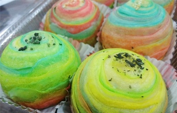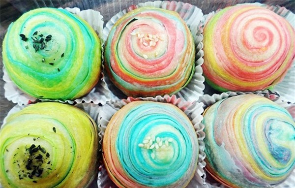 Những màu sắc xanh, đỏ, vàng, cam, tím hay hồng... kết hợp hài hòa trong mỗi chiếc bánh lại được điểm thêm bằng kem tươi, trái cây hoặc phô mai khiến bạn chỉ nhìn cũng thật khó cưỡng lại được cảm giác muốn thử một miếng.