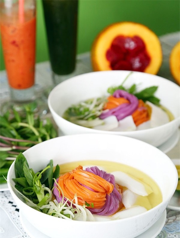 Vẫn là bánh phở mềm mỏng đấy, nhưng thay vì màu trắng thường thấy, bánh phở lại được “tô màu” đỏ, cam, xanh, tím, nâu... từ các nguyên liệu thiên nhiên như gấc, bí đỏ, cải xanh, gạo lứt... tạo ra sự hấp dẫn về thị giác hơn. Loại bánh phở này có thể dùng cho cả phở nước lẫn phở cuốn. Dù nhiều người còn e ngại bởi đã quen với màu phở truyền thống, nhưng đa số thực khách đều tỏ ra hào hứng với loại phở "bảy sắc cầu vồng này".