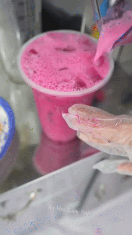 Các món sinh tố nói chung đều chỉ có 1 công thức: Sơ chế nguyên liệu rồi xay nhuyễn tất cả với nhau. Sinh tố thanh long đỏ, nước mía cũng tương tự. Bạn có thể xay 200-300gr thanh long đỏ với 200ml nước mía hoặc thay đổi định lượng tùy theo sở thích. Sau đó, có thể thêm topping dừa khô hoặc dừa sợi.