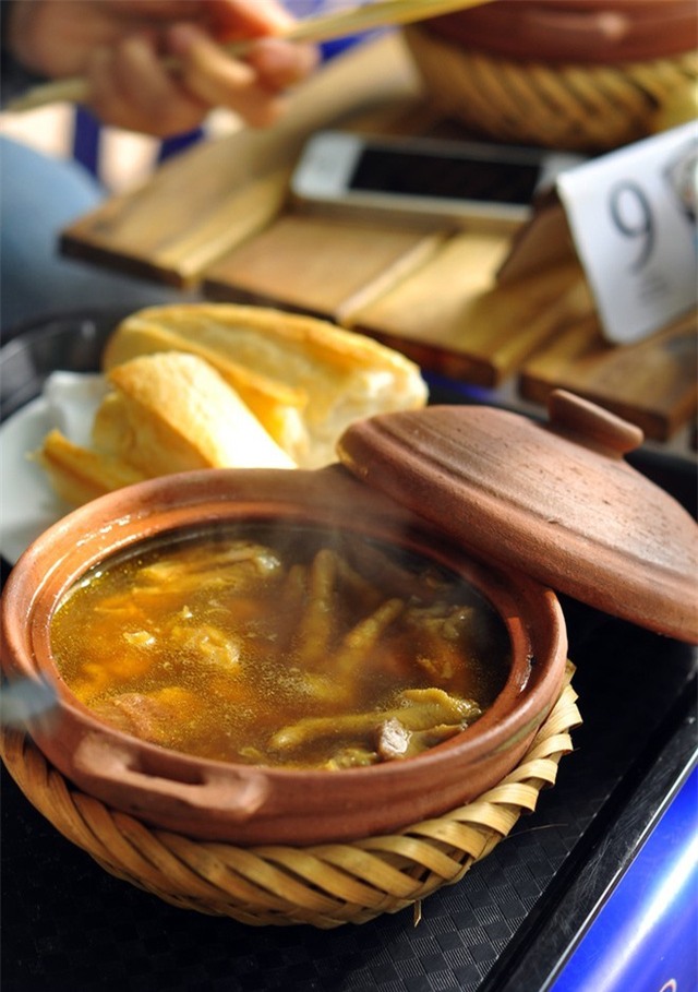 Bánh mì chân gà mật ong: Mới mẻ, lạ miệng, bánh mì chân gà mật ong đun trong niêu nóng hổi cũng làm không ít đôi bạn mê mẩn.