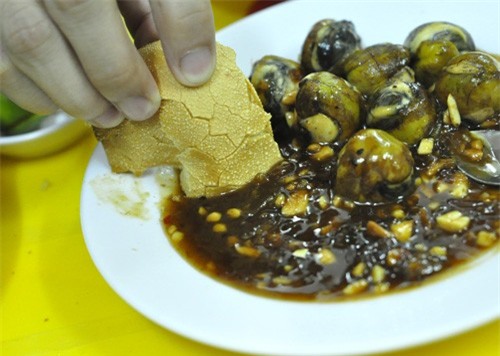 Bánh mì chấm cút lộn xào me: Không phổ biến, nhưng bánh mì chấm cút lộn xào me thực sự là món ăn mà các cặp đôi phải thưởng thức. Trứng cút lộn có đủ độ ngọt thơm, được xào cùng nước sốt me chua mặn ngọt, thơm nức mùi tỏi phi, ăn kèm bánh mì đưa đẩy rất ngon miệng. Món quả nhiên dễ gây nghiện cho các đôi bạn mê ăn vặt.