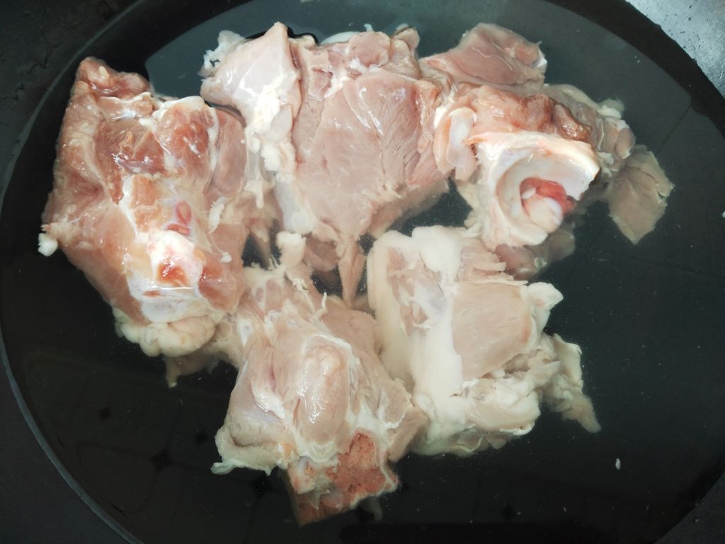 Bước 1: Gọt vỏ, rửa sạch và cắt nhỏ khoai sọ. Gọt vỏ, rửa sạch và cắt cà rốt thành từng miếng, gừng rửa sạch và cắt lát, kỷ tử rửa sạch rồi để riêng. Xương rửa sạch, cho vào nồi nước sôi, trụng sơ rồi vớt ra.