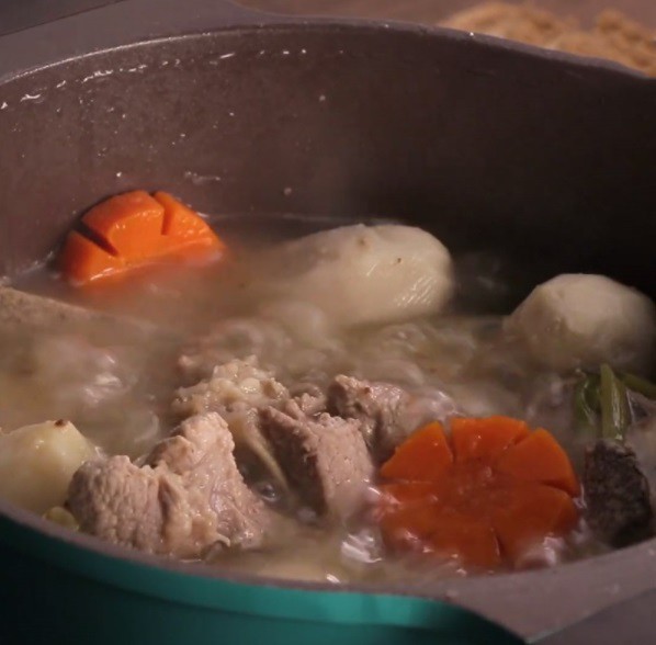 Bước 2: Cho tất cả các nguyên liệu trừ muối vào nồi áp suất. Đổ một lượng nước vừa phải rồi đậy nắp lại. Đun sôi ở lửa lớn thì chuyển sang lửa vừa rồi nấu trong 10 phút thì hạ lửa nhỏ đun tiếp trong 5 phút nữa. Sau đó mở nắp, thêm muối và khuấy nhẹ, đều. Sau khi canh nguội hơn thì cho kỷ tử vào rồi lấy canh ra tô và thưởng thức.