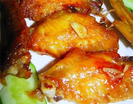 Lấy cánh gà nướng chao ra đĩa, dùng nóng là ngon nhất!