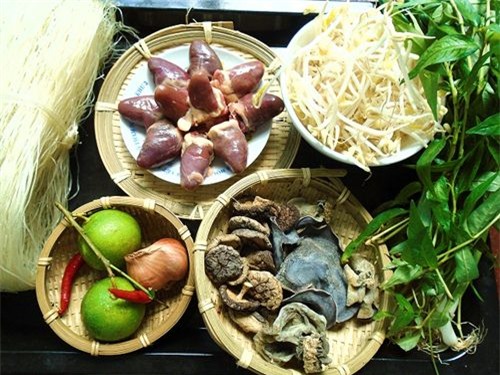 Bước 5: Khi nồi nước dùng sôi, cho miến vào và vớt ra bát, thêm giá đỗ chần, ít tim gà lên trên cùng hành, răm thái nhỏ.