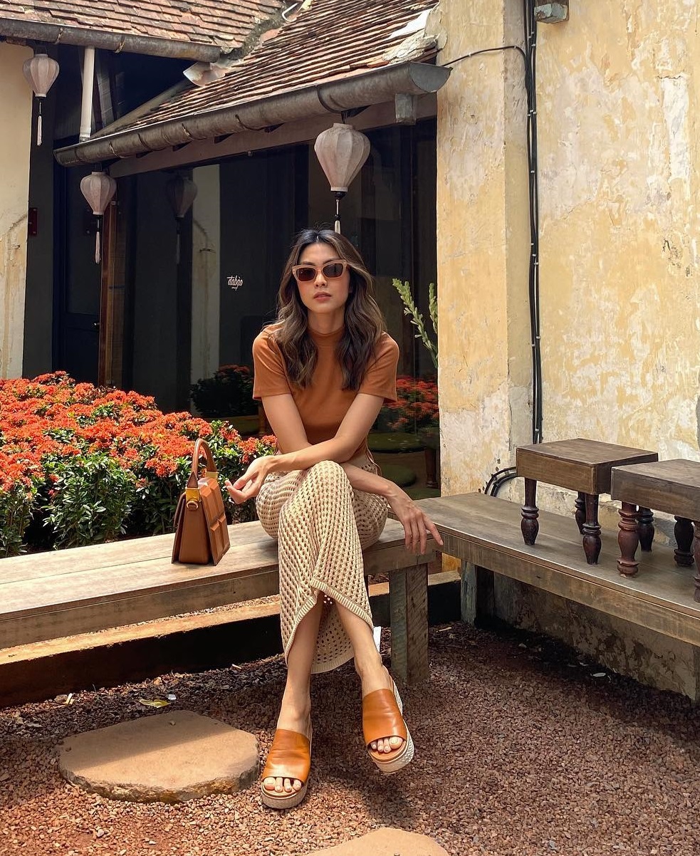 Dù sở hữu chiều cao lý tưởng nhưng Đỗ Thị Hà không chủ quan trong khoản tôn dáng. Nàng hậu luôn sơ vin gọn gàng và chọn những kiểu giày nịnh chân như giày cao gót mũi nhọn hay sandal. Nhờ vậy, vẻ ngoài của cô càng thêm cuốn hút, sang trọng. Các set trang phục tối giản của Đỗ Thị Hà không quá cầu kỳ nhưng vẫn nổi bật và long lanh. Đây là những ý tưởng đáng tham khảo cho dịp Tết và mùa xuân sắp tới.