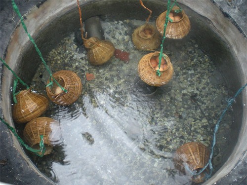 luộc trứng bằng cách ngâm chúng dưới suối một khoảng thời gian rồi vớt