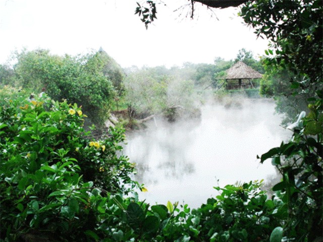những suối nước nóng với 70 điểm phun lộ thiên, nhiệt độ nước luôn đạt
