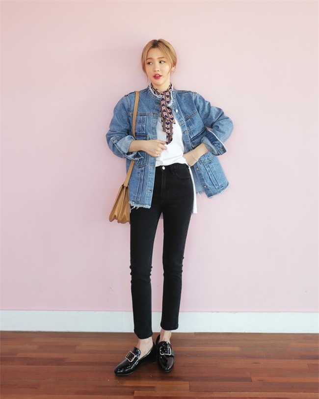 Nếu muốn diện denim jacket theo phong cách Hàn Quốc một chút, bạn hãy