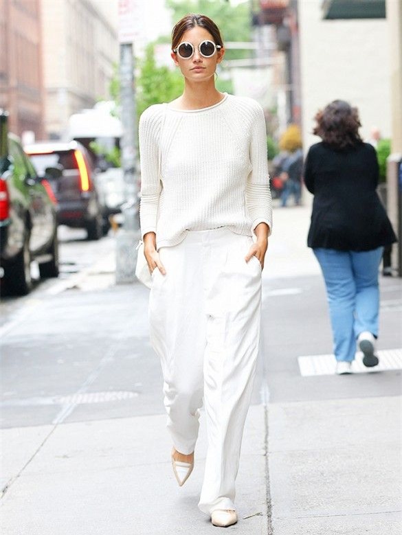 Màu trắng dường như chưa bao giờ lỗi mốt và luôn mạng lại vẻ trẻ trung, thời thượng cho set đồ nhưng để chơi gam màu này sao cho ăn điểm trong thời tiết mùa thu hơn thì bạn nên thử những tông trắng ngà, màu kem để có vẻ ngoài mềm mại và dịu dàng hơn. Việc sử dụng những chất liệu khác nhau khi chơi cả cây màu cũng là bí kíp giúp bạn mặc đồ đơn giản nhưng vẫn đẹp tinh tế.