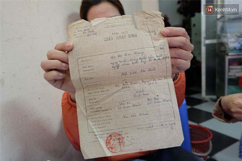 Giấy khai sinh chị Trang còn lưu giữ |