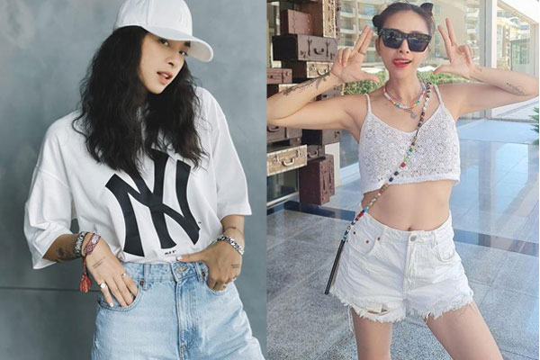 Khi kết hợp áo thun với quần jeans, quần short, Ngô Thanh Vân cũng áp dụng tuyệt chiêu sơ vin để tăng độ thanh lịch. Ngô Thanh Vân có những lựa chọn màu sắc áo thun khá đa dạng, nhưng chủ yếu là xoay quanh các gam màu trung tính. Gu chọn áo thun này rất đáng học hỏi vì giúp người mặc trông trẻ trung, mà không bị "cưa sừng làm nghé".