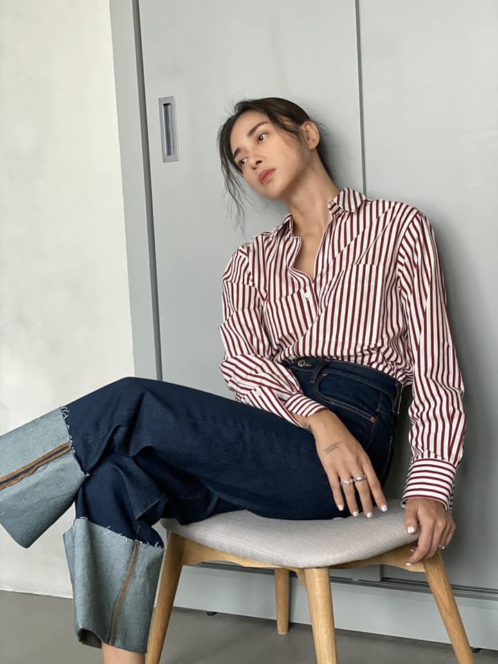 Giống như rất nhiều chị em khác, Ngô Thanh Vân cũng không bỏ qua áo sơ mi khi hoàn thiện phong cách. Thế nhưng, thay vì bó hẹp style trong những mẫu áo sơ mi đơn giản nhất, Ngô Thanh Vân còn đa dạng hóa phong cách khi ưu ái một số phiên bản nổi bật như: sơ mi kẻ sọc, sơ mi lụa họa tiết… Tất nhiên, nhưng mẫu áo sơ mi cơ bản vẫn được Ngô Thanh Vân chọn diện. Và cô thường mix&match theo cách khá trẻ trung, đó là kết hợp cùng quần sáng màu, đi giày thời thượng.