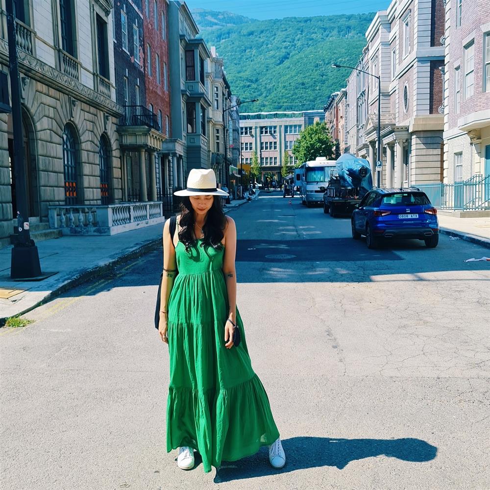 Dù rất chăm diện quần short, quần dài nhưng Ngô Thanh Vân vẫn không thể bỏ qua váy vóc điệu đà. Gu chọn váy của Ngô Thanh Vân khá trẻ trung, nổi bật. Nữ diễn viên thường xúng xính váy họa tiết, váy màu xanh nổi bật hay váy trắng… Đáng chú ý là khi diện váy, Ngô Thanh Vân thường kết lại bộ đồ bằng một đôi sneaker trắng. Chi tiết này giúp outfit càng thêm phần trẻ trung, nhưng vẫn nữ tính, thanh lịch.