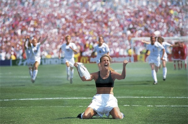 Bức ảnh chụp cựu tuyển thủ Brandi Chastain ăn mừng pha đá phạt đền quyết định giúp Mỹ thắng Trung Quốc ở chung kết World Cup bóng đá nữ năm 1999. Brandi Chastain được lựa chọn để đá quả phạt đền cuối cùng và cô đã thực hiện thành công.