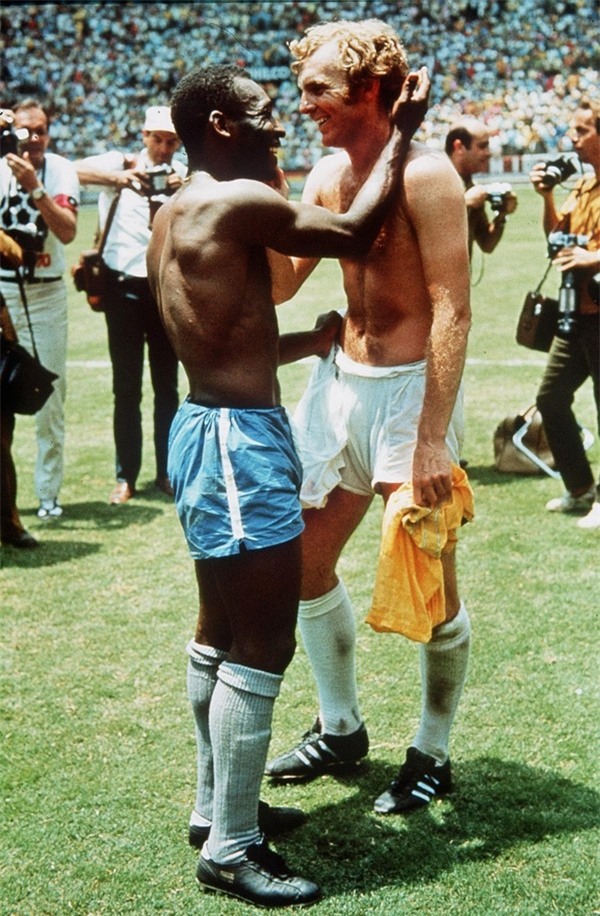 Cuối trận, đội trưởng đội tuyển Anh Bobby Moore cười tươi sau khi đổi áo với Pele, người sau này là “vua bóng đá” thế giới. Đây là một trong những bức ảnh biểu tượng không chỉ của môn bóng đá.